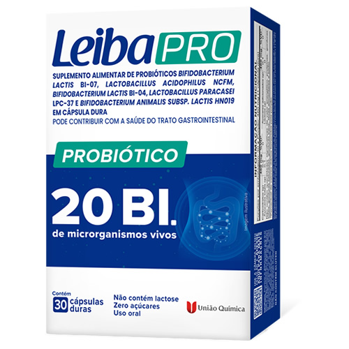 Leiba PRO é um suplemento alimentar probiótico que combina 5 cepas com 20 bilhões de microorganismos vivos para garantir o máximo de benefícios: