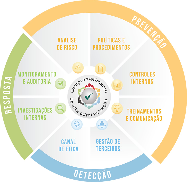 Prevenção: Análise de riscos, politicais e procedimentos, controles internos, treinamentos e comunicação.
